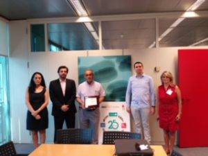 En la foto aparecen – de izquierda a derecha -, la Directora de AULA, Lola González; el Director del Colegio Santa María de la Hispanidad, Fernando Alegría, y el tutor de la premiada José María Fernández, la Presidenta y Secretario General de la Asociación Española de Promotores de Cursos en el Extranjero, ASEPROCE (entidad patrocinadora del certamen), Marta Galea y Oscar Porras respectivamente.
