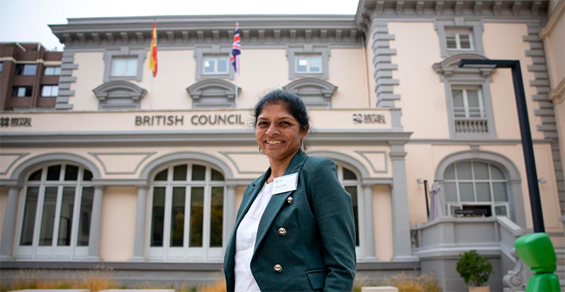 Fotografía extraida de la noticia del periódico El País – Mina Patel, directora de la investigación ‘The Future of English: Global Perspectives’, ante la sede del British Council en Madrid, España.
